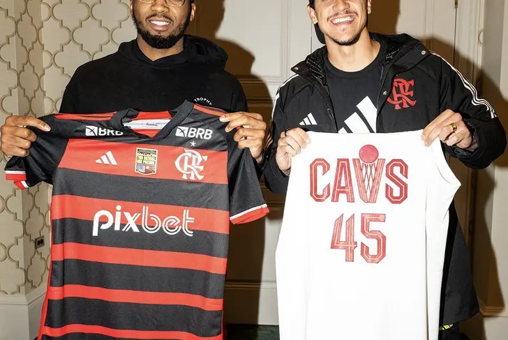 O universo flamenguista está em polvorosa com o vazamento exclusivo da imagem do aguardado uniforme do Flamengo para 2024. A foto revela o atacante Pedro ao lado do astro da NBA, Donovan Mitchell, ostentando o novo manto rubro-negro. O encontro inusitado de estrelas promete deixar a Nação ainda mais ansiosa para ver o time em ação com essa nova roupagem.